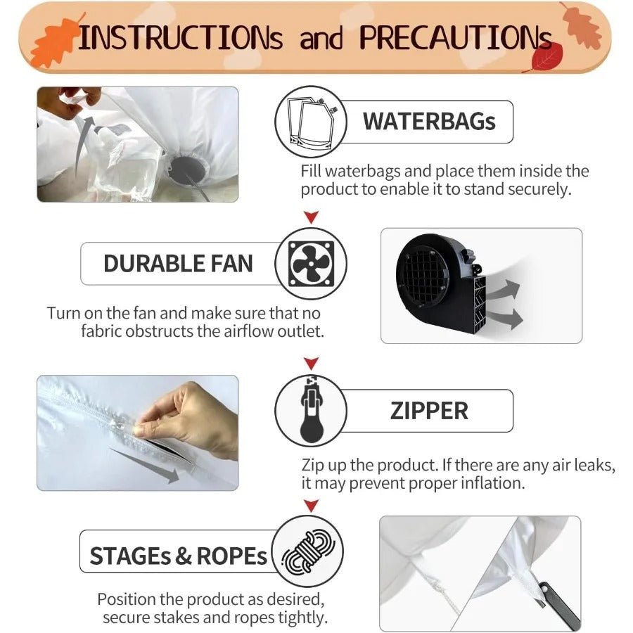 Built with durable, weather-resistant materials, it inflates quickly in seconds with the built-in fan and stays securely in place thanks to included stakes and tethers. The bright internal LED lights make it glow beautifully at night, creating a warm and welcoming Thanksgiving atmosphere for guests and passersby alike.